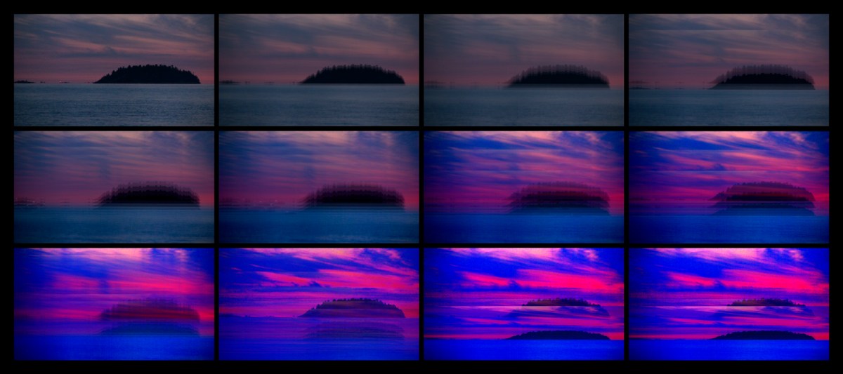 Horizons incertains [Uncertain Horizons] — extraits / excerpts Publié 7 août 2013 à 1600 × 711 Horizons incertains [Uncertain Horizons] Killbear Park, Georgian Bay (at sunset) Montage d’extraits [montage of video stills], impression au jet d’encre [ink jet print], 76cm x 36cm, 2010