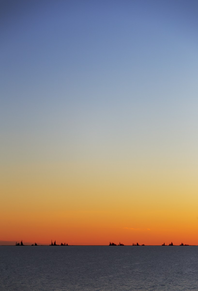 Paysage fictif intégrant l’onde sonore produite à l’écoute de la voix de l’ancien président américain Barack Obama citant quelques vers du célèbre poème d’Emma Lazarus apparaissant aujourd’hui au pied de la Statue de la Liberté, en conclusion d’un discours sur son projet de réforme du système d’immigration, à la American University School of International Service, Washington, le 1er juillet 2010.
