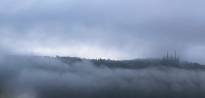 Paysage fictif intégrant l’onde sonore produite à l’écoute du premier enregistrement connu d’une voix humaine, par Édouard-Léon Scott de Martinville le 9 avril 1860, enregistrant « Au Clair de la Lune » grâce à son invention, le phonautographe.