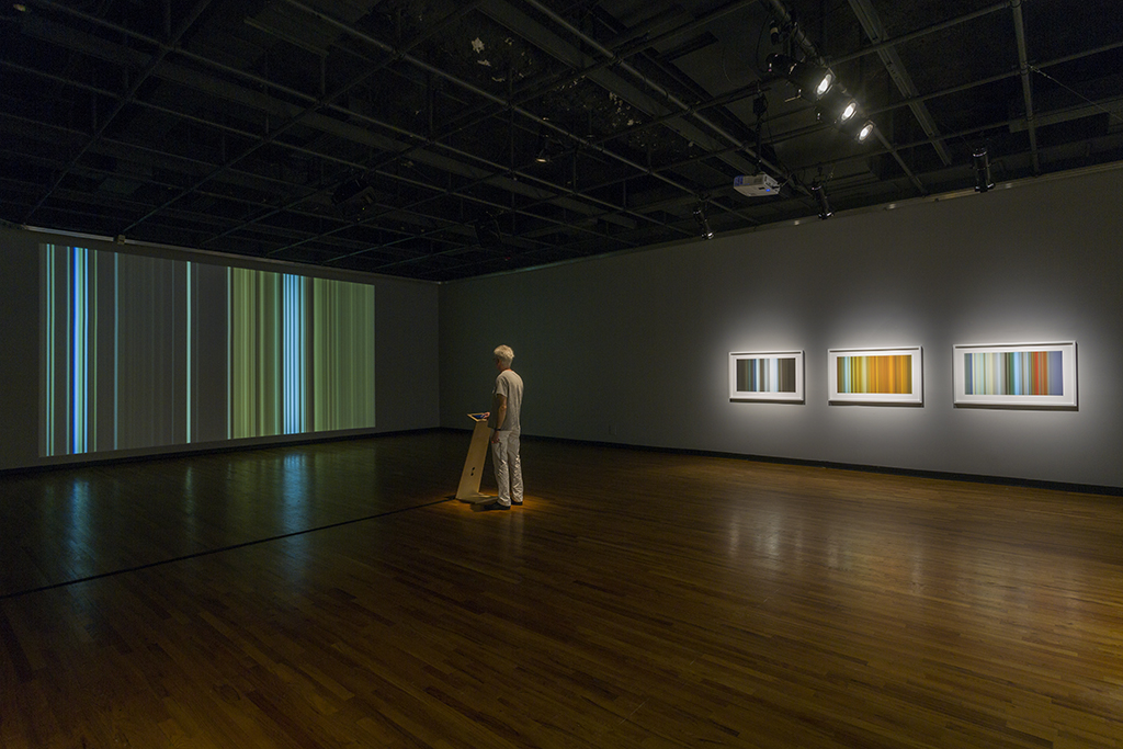 L’exposition «Composer avec l’horizon» regroupe deux installations interactives «Travellings» et «Séquences» et une dizaine d’œuvres imprimées. Ces œuvres interrogent notre rapport ambigu à la vitesse et aux technologies. Le spectateur y est invité à ralentir ou à se jouer de cette course contre la montre dans laquelle nous semblons tous engagés, de même que les liens sensibles qui se tissent entre notre corps et le paysage. L’ensemble propose une réflexion sur l’expérience de la vitesse et sur l’idée que plus on se déplace vite, plus on court le risque de « voir sans voir ». Qu’advient-il du paysage parcouru alors que notre vitesse croît et que les lignes peintes sur la route semblent s’étirer? Se résume-t-il à un flux d’informations lumineuses et sonores? La profondeur du paysage s’annule-t-elle pour devenir surface ou machine à peindre?