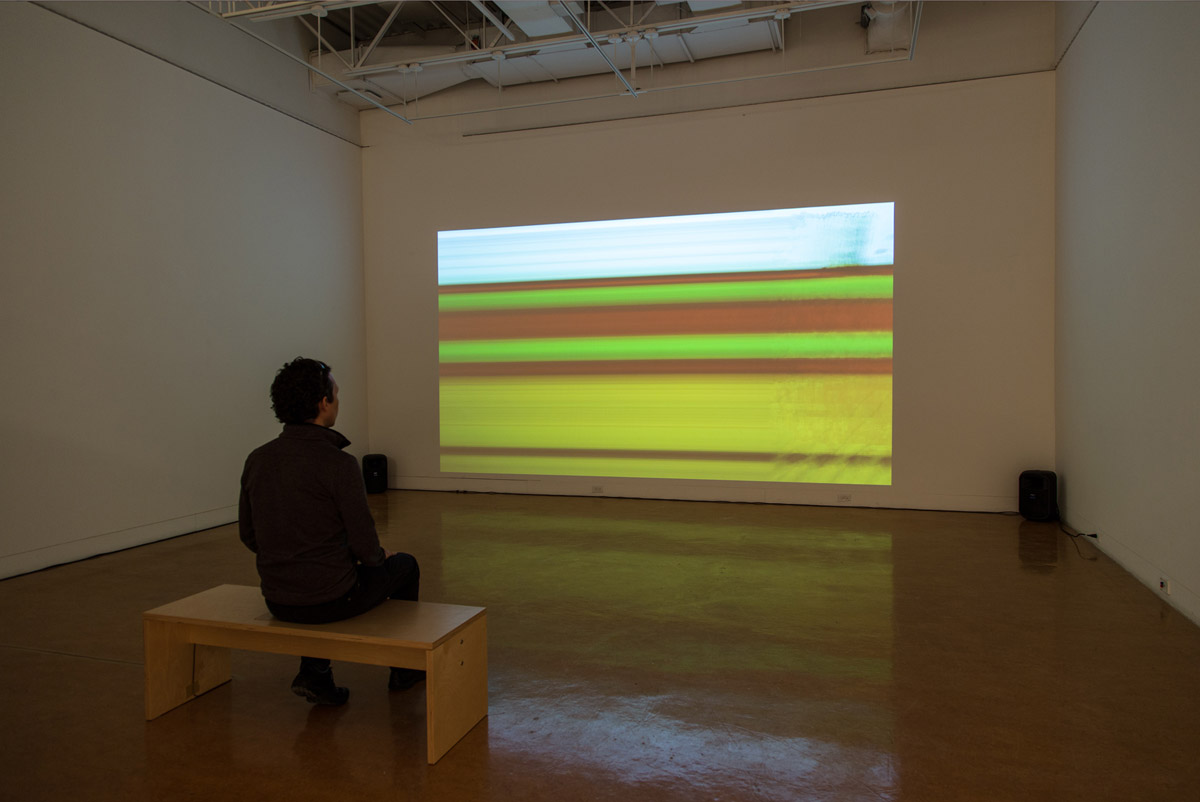 The landscape is transformed into electronic abstraction that can be seen as a recall to modern pictorial abstraction, except that in this case the picture is literally moving during the viewer’s experience. Each of these landscapes finally generates audio tones that vary according to the relative proportions of the red, green and blue channels.
